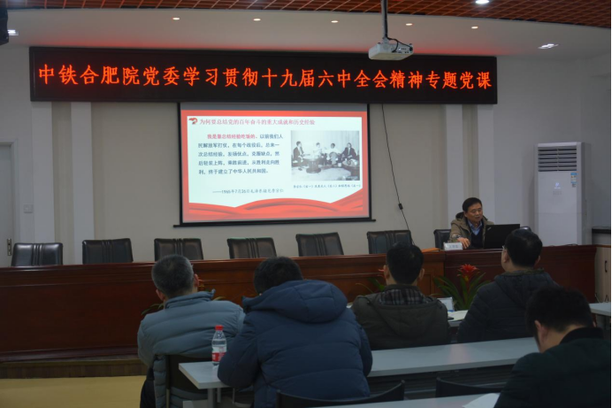 1月20日下午,中鐵六院·合肥院黨委書記、執(zhí)行董事王智忠以《深入學(xué)習(xí)貫徹黨的十九屆六中全會(huì)精神 全力推動(dòng)中鐵六院合肥院建設(shè)區(qū)域性綜合設(shè)計(jì)院》為題,為全院60余名黨員干部講授專題黨課并作宣講報(bào)告。院紀(jì)委書記、工會(huì)主席、總建筑師胡華國(guó)主持黨課報(bào)告會(huì)。